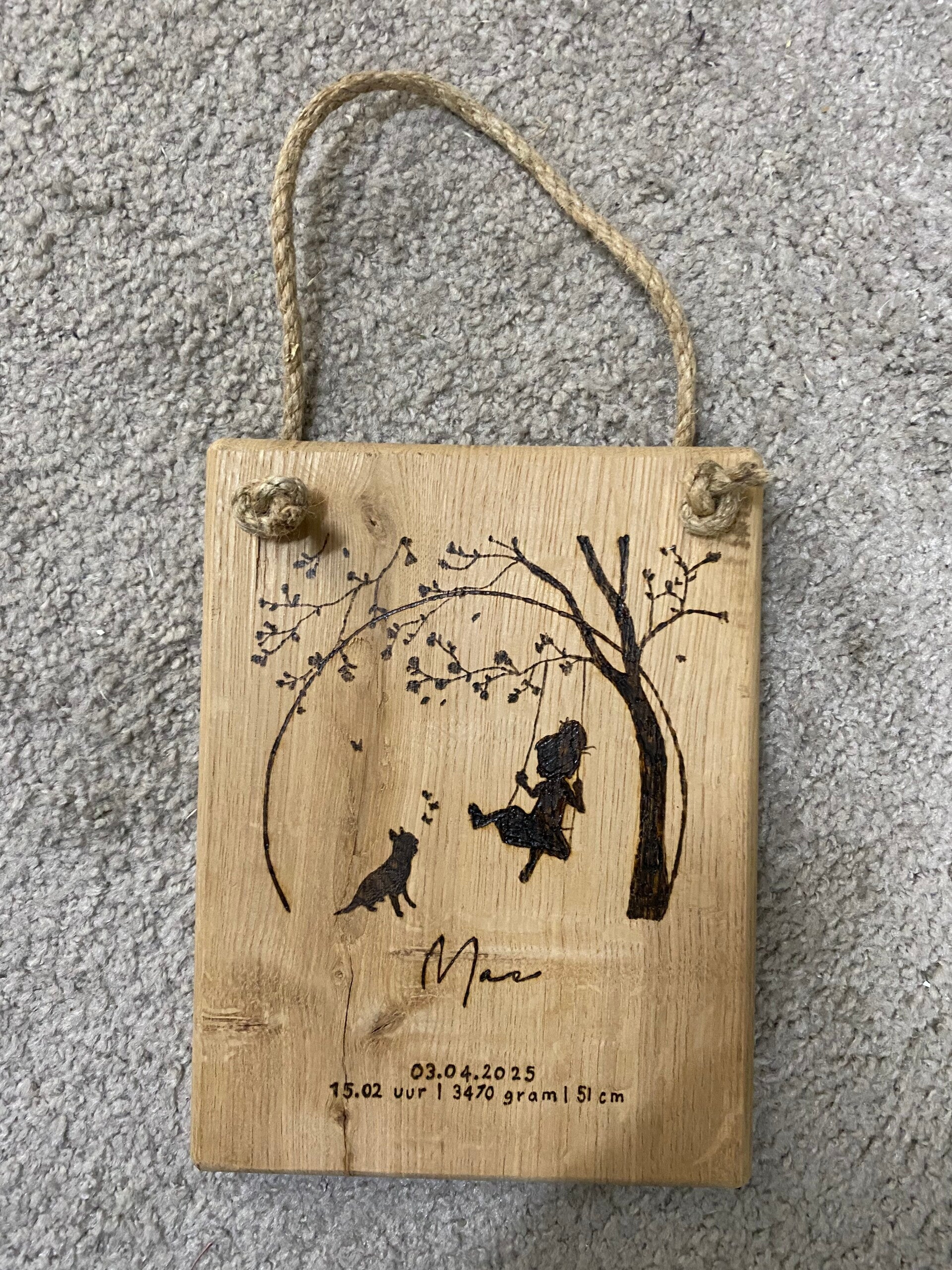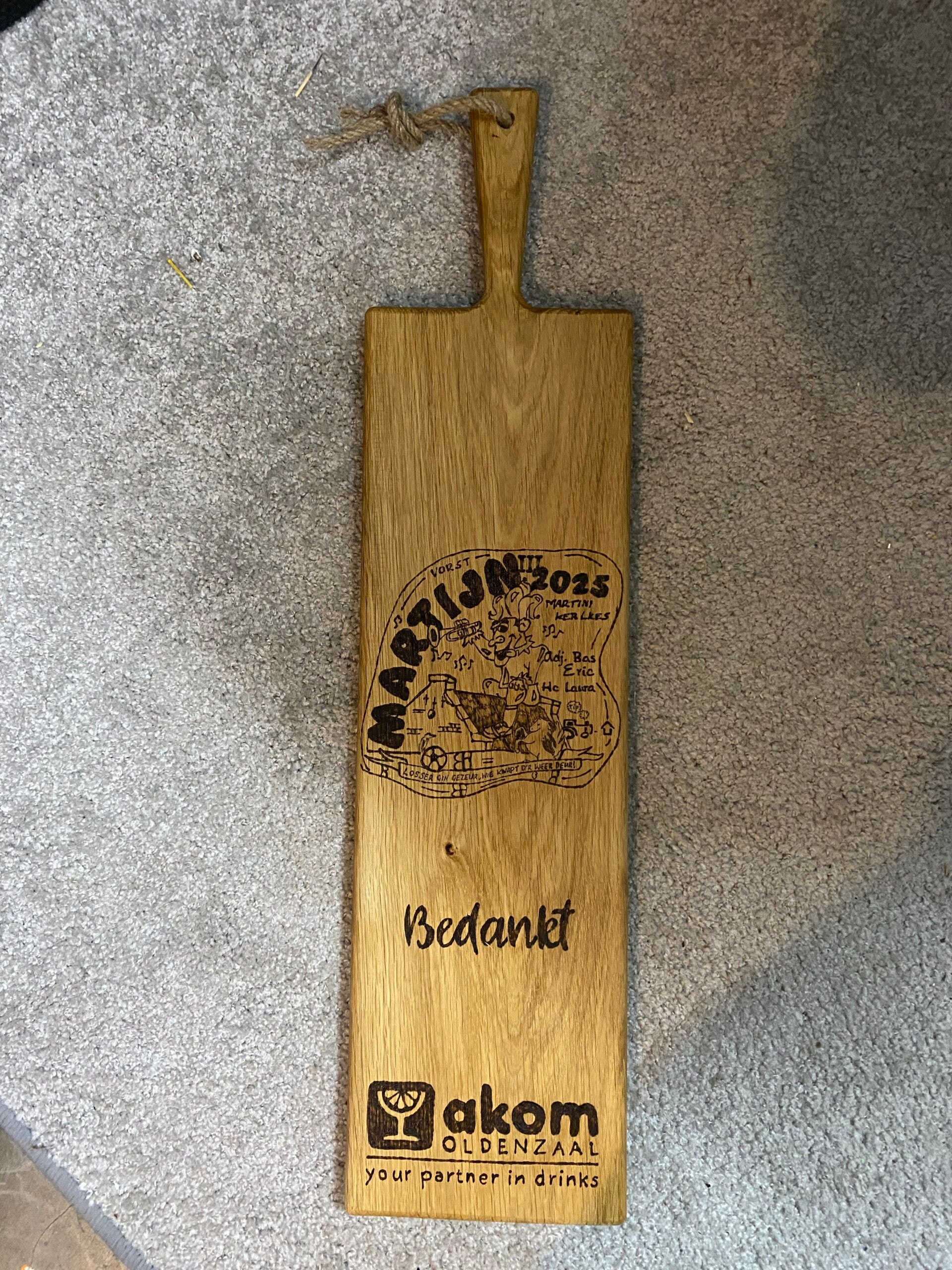 Stuur een berichtje om samen de gravering op de plank te bespreken.