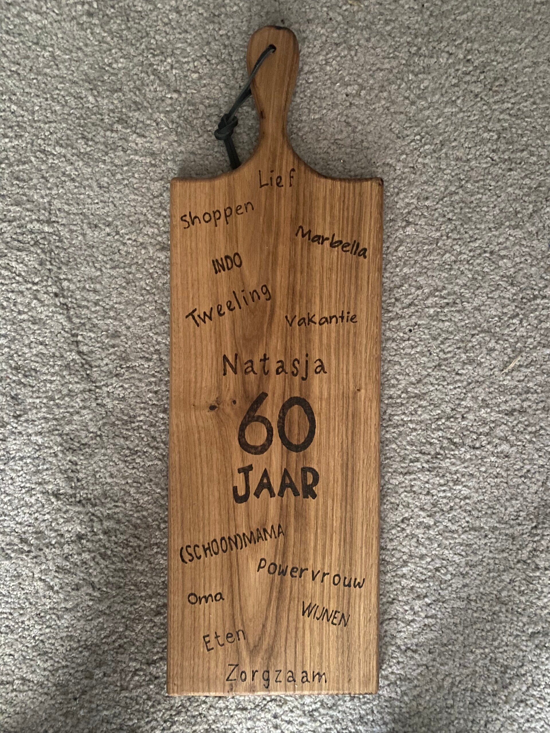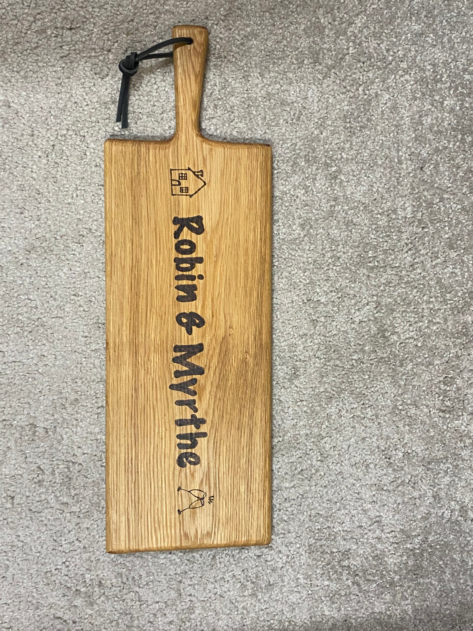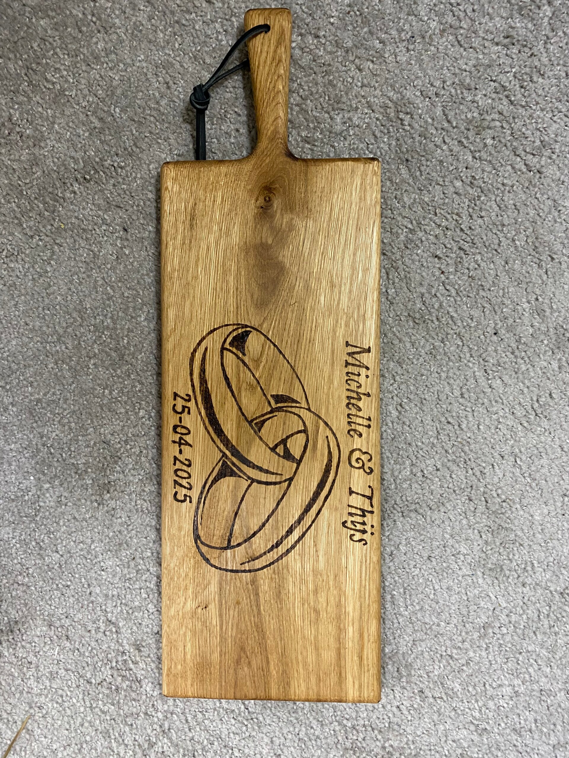 Gegraveerde massief eiken houten tapasplanken 60cm lang incl handvat.
