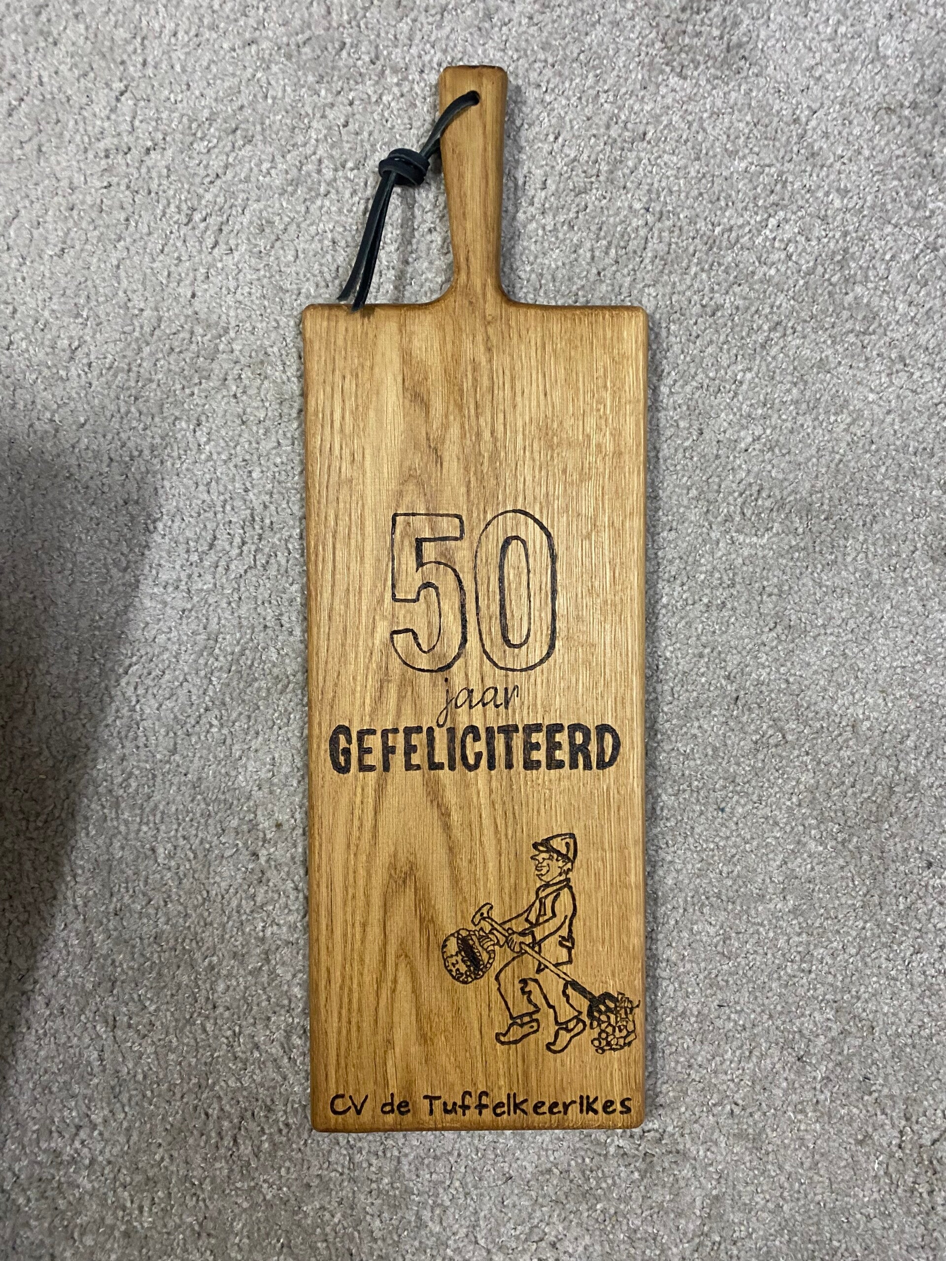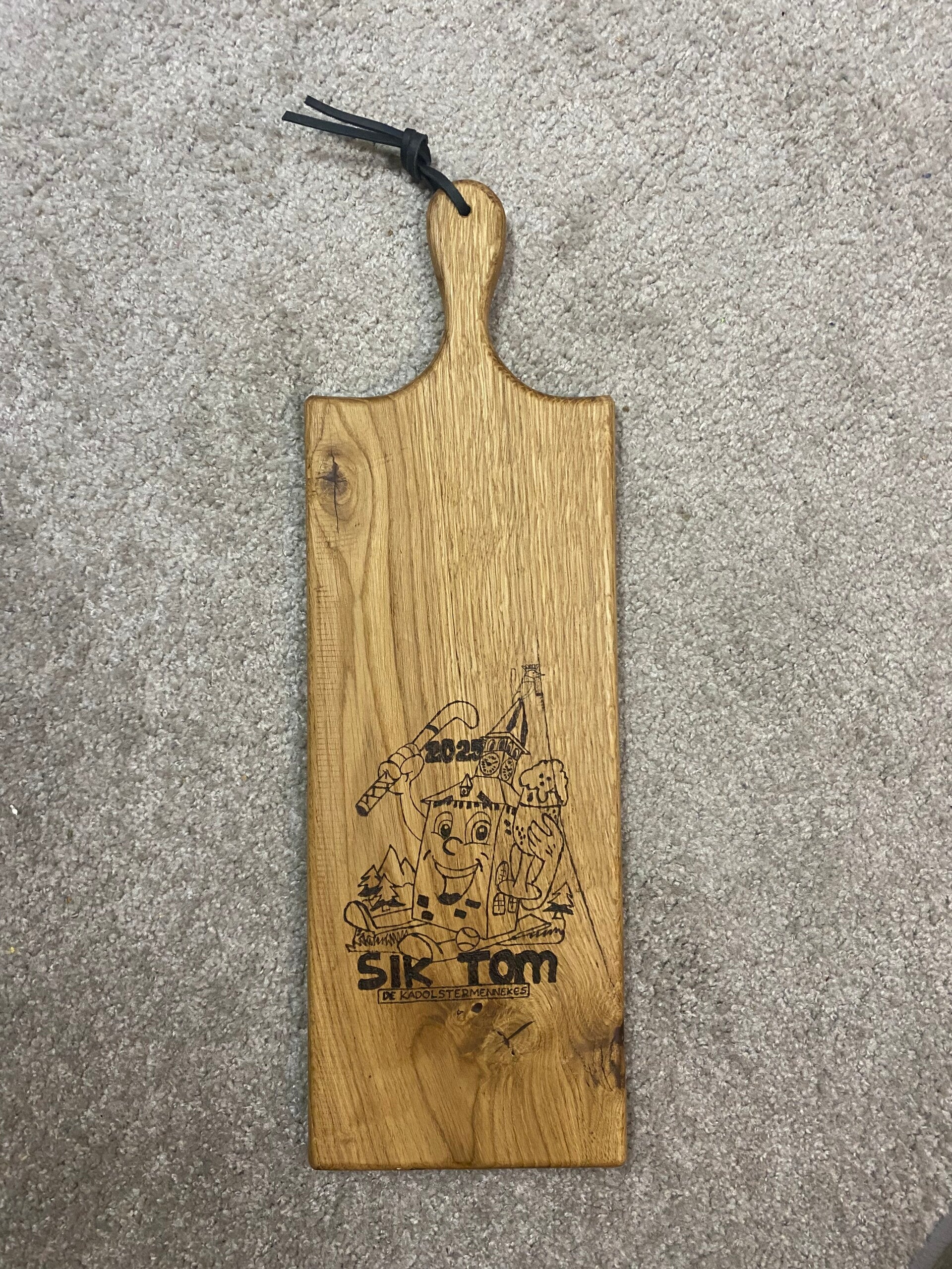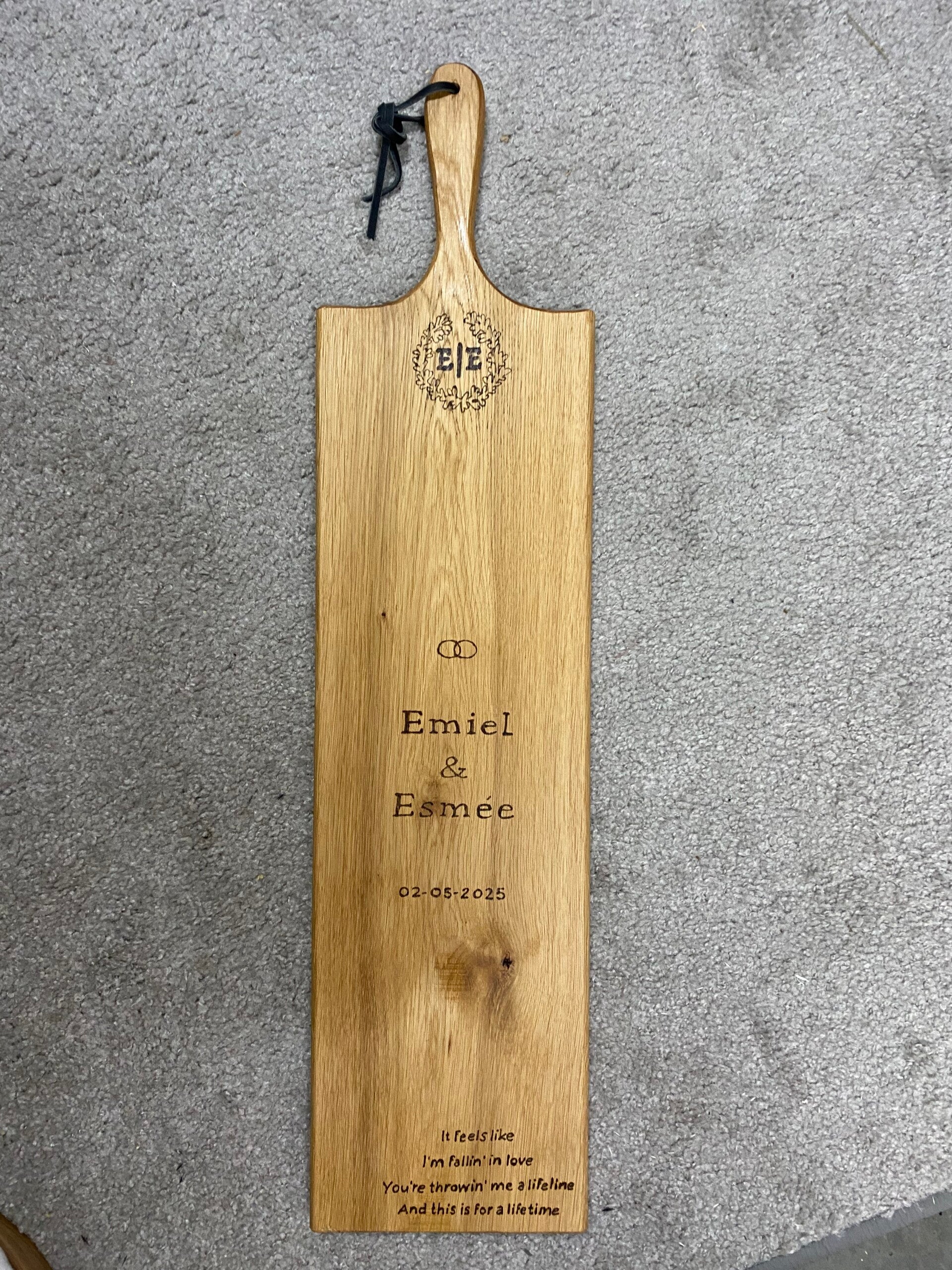 Gegraveerde massief eiken houten tapasplanken 60cm lang incl handvat.